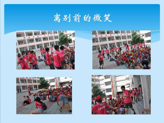 2013年7月25日,公司迎来了来自宝岛台湾(YMCA)的一群大孩子,他们有高中生、也有大学生,此行的目的就是来为我们公司的员工子女开展“第二届彩色童年夏令营活动”,正因为有了去年第一届的成功经验,他们的此行也是信心满满、壮怀激烈,而我们公司的小孩子们,甚至家长当然是更加期待,从5、6月份开始,就不停打听,今年的夏令营什么时候开始呢?台湾的哥哥姐姐什么时候还来呀?等等,想那一张张稚嫩的脸庞,和热切的关注,在此时,总算有个圆满的答复了。今年的第二届夏令营与去年也有所不同,更重要的是本届夏令营,在去年的基础上增加了更多新鲜有趣的课题,并将原计划3天的活动扩展为5天,孩子们开心那是别提了,家长更是放心的不得了,最为难能可贵的是,在接下来的5天中,有一部分家长志愿来照顾小孩子,总结来说,这个夏令营,孩子们长了知识、练了胆量、开阔了视野,意义巨大,此次活动也为公司企业文化建设项目抹上了最浓墨的一笔。